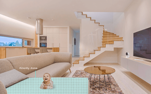Entérate de cuándo un niño salta al sofá o se sube a la cuna. Las Zonas Prioritarias le permiten dar prioridad a las áreas sensibles, de modo que sabrá cuándo algo o alguien ha entrado o salido de la zona.