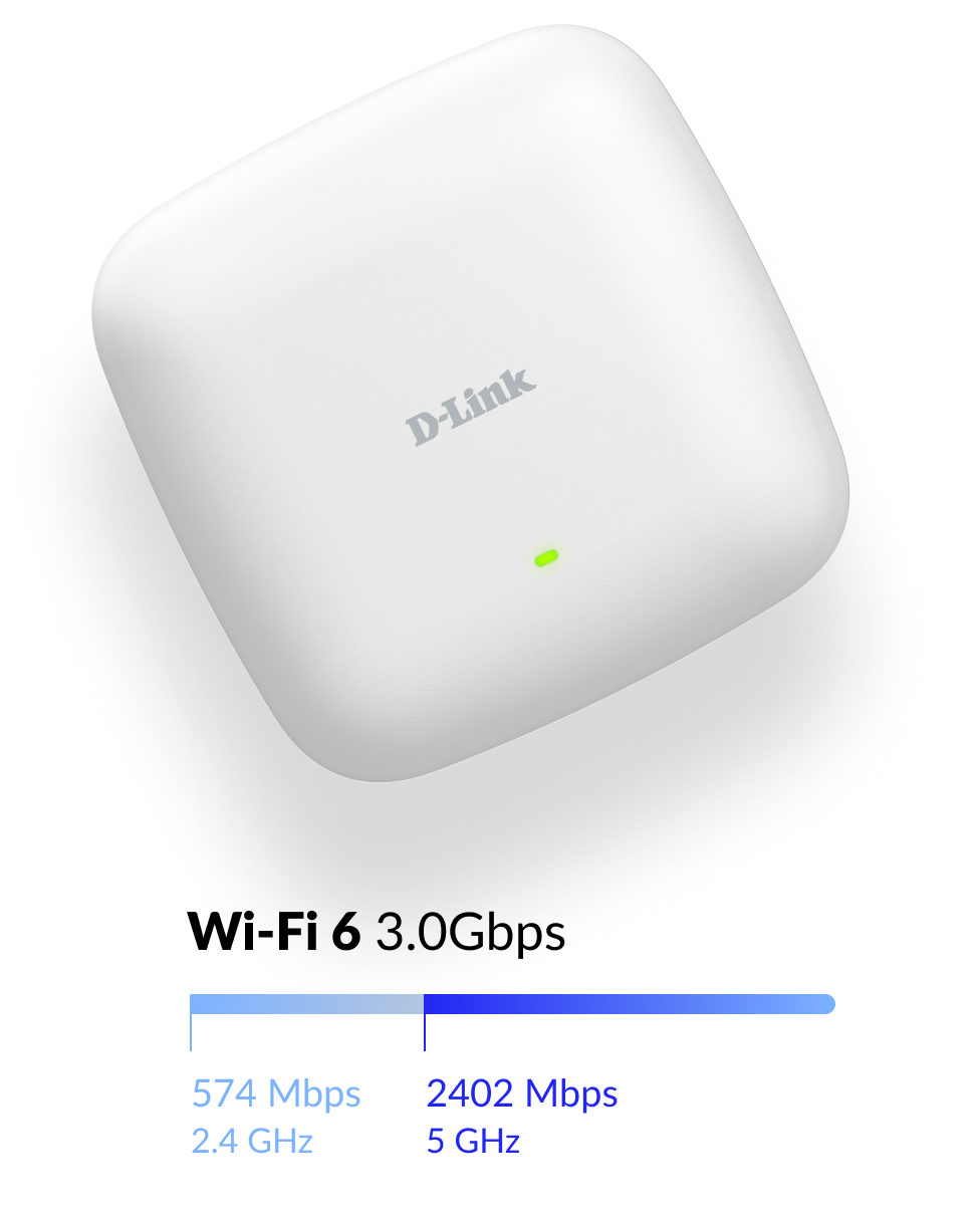El DAP-X3060 con Wi-Fi 6 ofrece velocidades increíbles, una capacidad significativamente mayor y una cobertura sin interferencias para entornos de empresa de todos los tamaños.