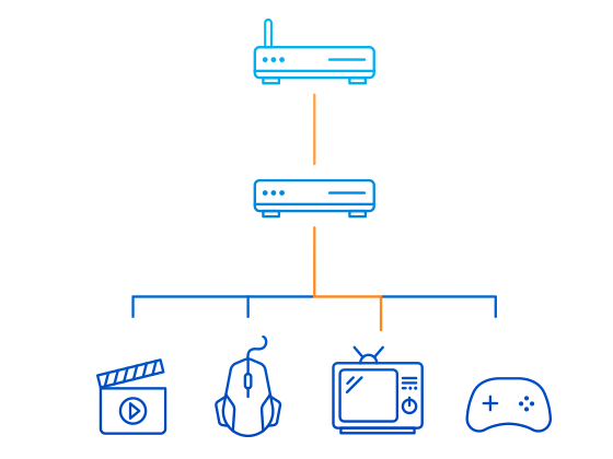 Juegos online, tus películas y series favoritas en 4K... y sin interrupciones ni píxeles - nada es más rápido que una conexión cableada a 1000 Mbps