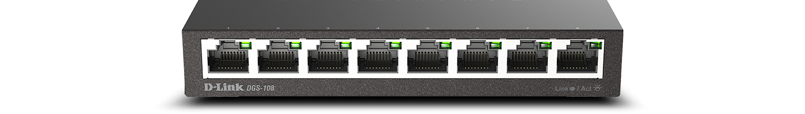 El switch de escritorio Gigabit no administrable de 8 puertos DGS-108 ofrece una forma económica para que las pequeñas y medianas empresas se beneficien del mayor ancho de banda de Gigabit Ethernet. Proporciona ocho puertos Gigabit para facilitar la expansión de su red y una forma rápida de actualizar su red a la conectividad Gigabit.