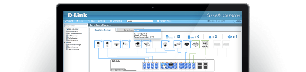 La exclusiva interfaz Surveillance de D-Link es fácil de usar y le ofrece una gestión más óptima de cámaras IP y grabadores de vídeo en red.