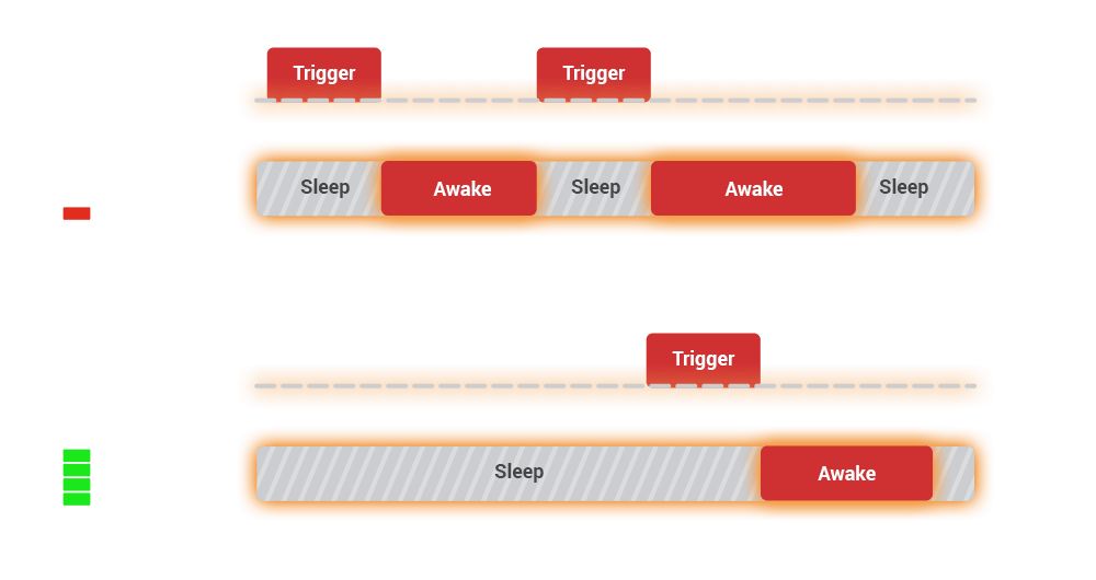 El Tiempo de Activación Objetivo (TWT) ayuda a reducir el consumo de batería de los dispositivos conectados al comunicarse con ellos y decidir cuándo y con qué frecuencia necesitan transferencias de datos. TWT aumenta el tiempo de suspensión del dispositivo, prolongando así la duración de la batería de los dispositivos cliente y optimizando el uso del espectro.
