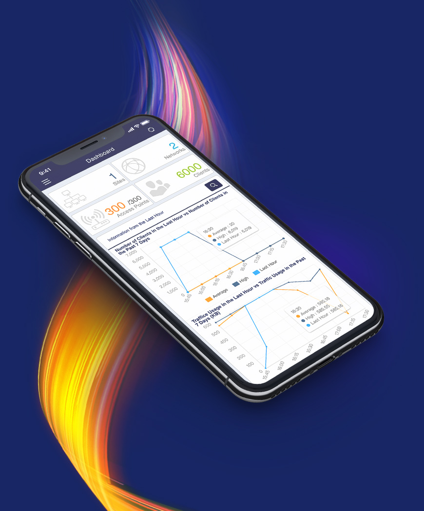 Gestione fácilmente su red desde cualquier lugar, obtenga una visión general instantánea del uso en tiempo real y del estado de su red, y delegue el acceso a sus equipos. Incluso puede cargar su propio mapa para mostrar visualmente la ubicación de sus dispositivos y crear páginas de inicio de sesión de acceso Wi-Fi con su propia marca.