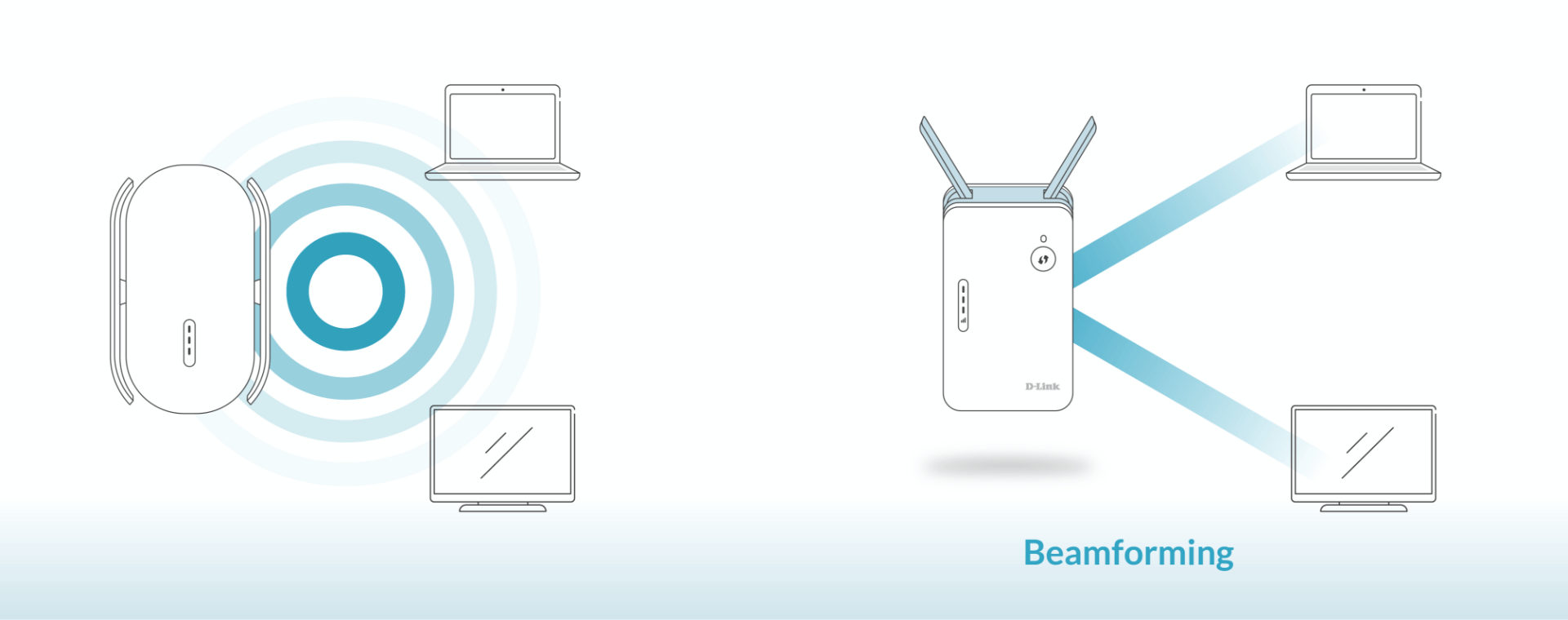 La tecnología Beamforming detecta la ubicación de los dispositivos para enfocar las señales y lograr transmisiones de datos confiables a mayores distancias.