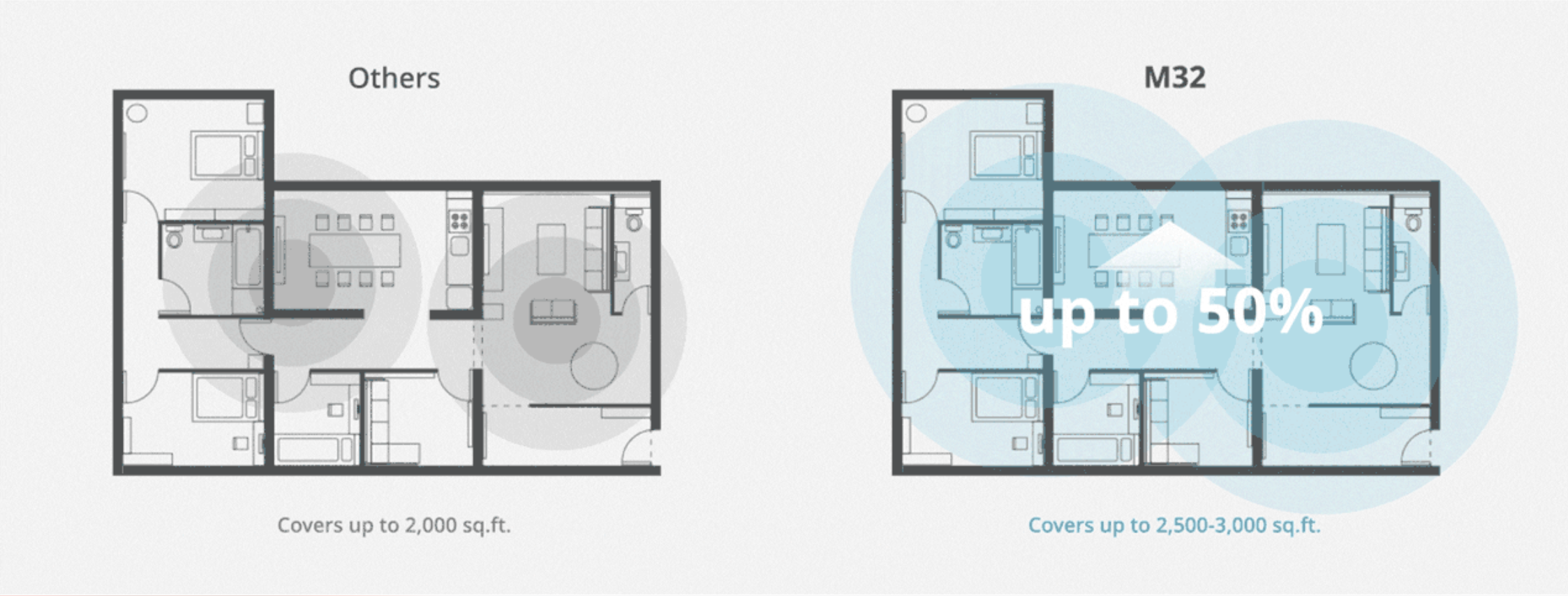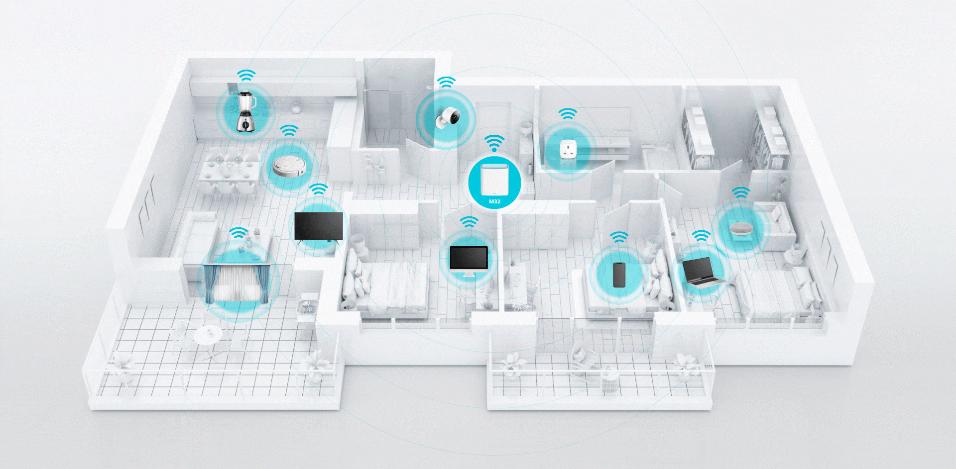 La mayoría de las soluciones para hogares inteligentes siguen utilizando 802.11n (2,4G) para conectarse a los enrutadores Wi-Fi. El M32 es la solución ideal, ya que ofrece una mejor señal y conexión en toda la casa para garantizar la compatibilidad entre productos para hogares inteligentes de diferentes marcas.