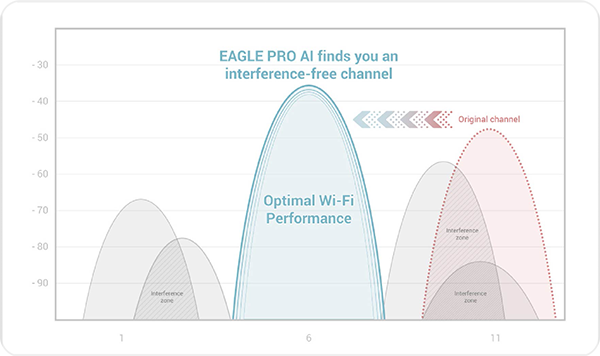 El optimizador de Wi-Fi con IA escanea continuamente el entorno para mantenerte conectado al canal más limpio disponible.