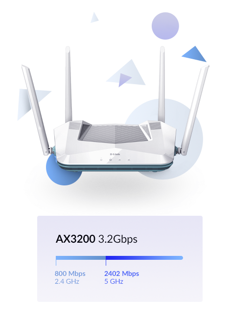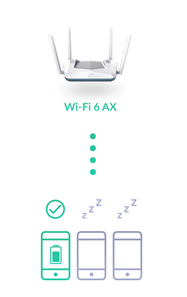 Aumenta la capacidad de tu red hasta 4 veces más con Wi-Fi 6, que utiliza 4×4 uplink/downlink, MU-MIMO, OFDMA y BSS Colouring para gestionar más dispositivos en la red con una eficiencia increíble. Ahora puedes conectar hasta 128 dispositivos a tu hogar inteligente sin preocuparte por tu red.